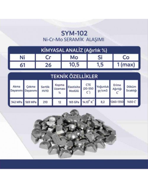 SYM102 (Ni-Cr-Mo porselen alaşımı) uygun genleşme
